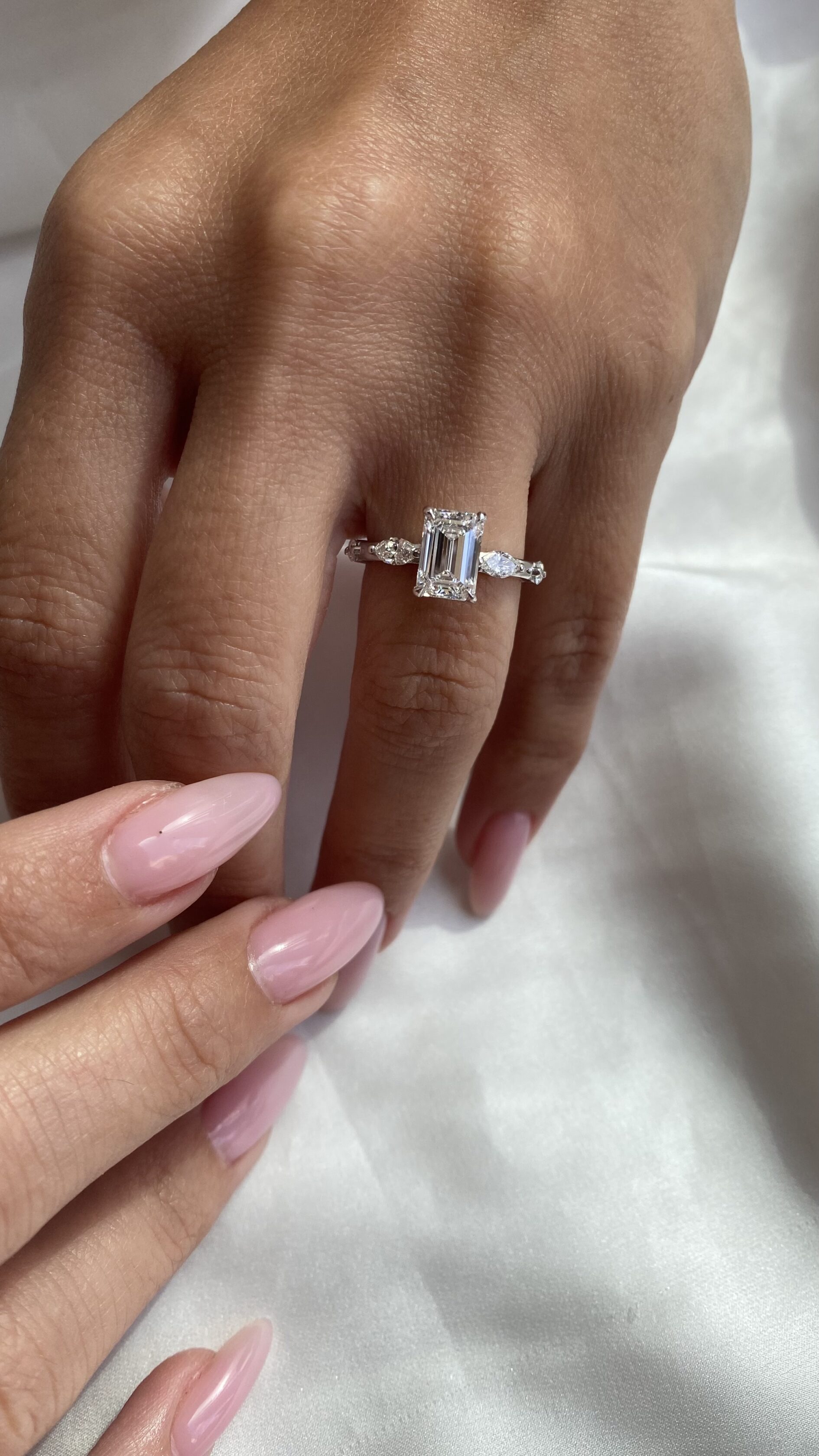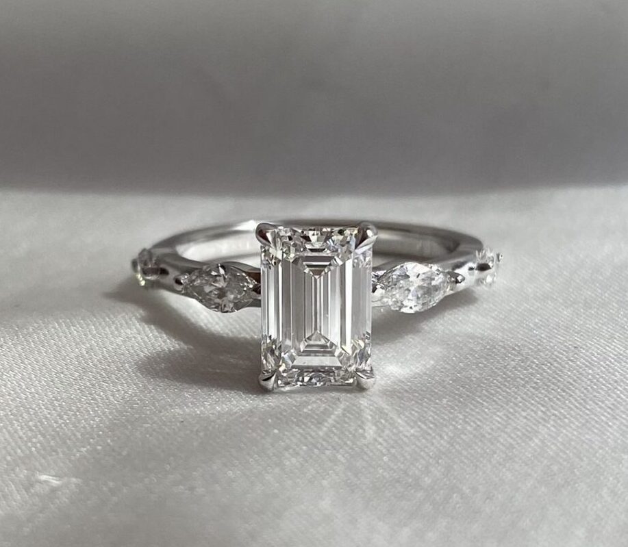 טבעת אמרלד משולבת ביהלומי מרקיזה בכל צד
